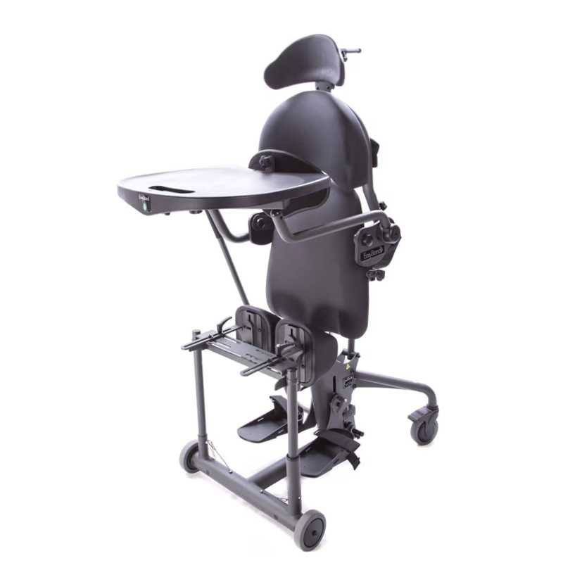 Exclusiva da marca EasyStand, a bandeja Shadow proporciona apoio anterior constante entre sentado e em pé, perfeito para o usuário com suporte limitado da parte superior do corpo além de permitir ficar em pé em uma posição com suporte parcial de peso ( apoiado na bandeja) ou parar para descansar/aclimatar-se quando necessário.