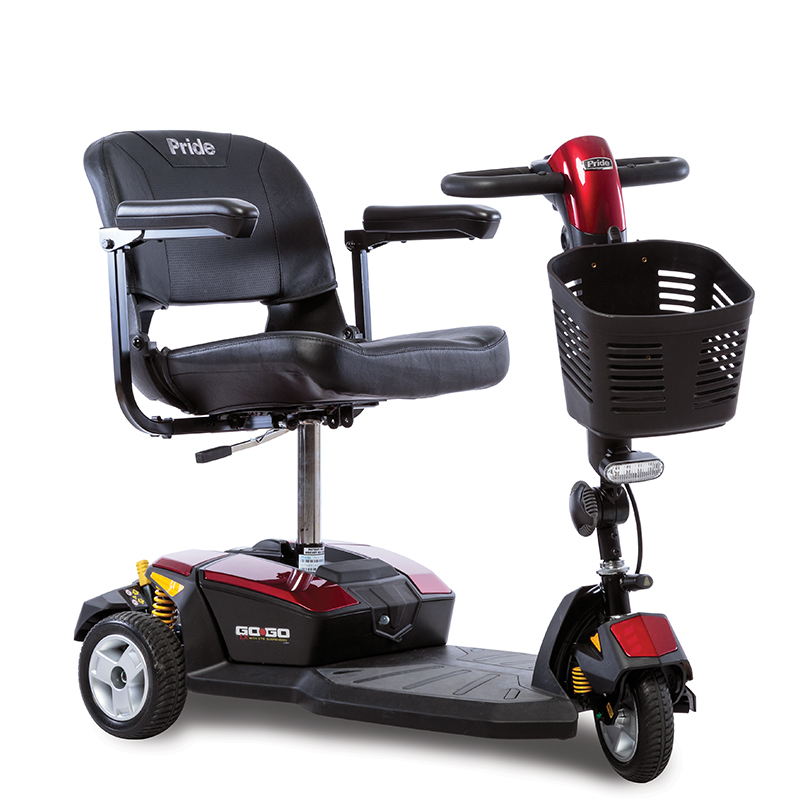 Triciclo Motorizado com transmissão sem correias, tipo automóvel – (pinhão-e-coroa) banco giratório, dezenas de dispositivos de segurança e desempenho, diagnóstico instantâneo por sinais luminosos ou sonoros, baterias leves e não viciáveis de grande duração, carregadores que desligam automaticamente. Esta cadeira de rodas tem um Manejo facílimo com uma só mão, lado direito ou esquerdo, desmontáveis de 5 a 6 partes, sem ferramentas, em menos de 1 minuto, remontáveis no mesmo tempo. Porta-bengala ou porta-muletas, porta-andador, cesto traseiro grande de compras e porta-copos são acessórios disponíveis para essa cadeira de rodas (scooter motorizado). O Scooter Gogo LX CTS 3 – Triciclo Motorizado com cores que podem ser adquiridas para ter sempre um novo visual. Guidom elíptico para melhor dirigibilidade e carregamento