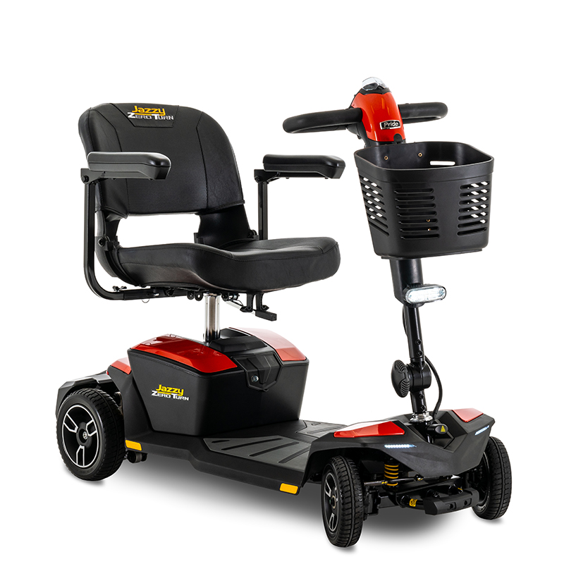 Quadriciclo Motorizado com duas transmissões sem correias, tipo automóvel – (pinhão-e-coroa), o que proporciona girar praticamente no próprio eixo, banco giratório, dezenas de dispositivos de segurança e desempenho, diagnóstico instantâneo por sinais luminosos ou sonoros, baterias leves e não viciáveis de grande duração, carregadores que desligam automaticamente. Esta cadeira de rodas tem um Manejo facílimo com uma só mão, lado direito ou esquerdo, desmontáveis de 5 a 6 partes, sem ferramentas, em menos de 1 minuto, remontáveis no mesmo tempo. Porta-bengala ou porta-muletas, porta-andador, cesto traseiro grande de compras e porta-copos são acessórios disponíveis para essa cadeira de rodas (scooter motorizado). O Scooter Zero Turn 8 (Jazzy Zero Turn 8) – Quadriciclo Motorizado nas cores Azul, Cinza Chumbo, Pérola, Preto, Verde Claro e Vermelho (verifique disponibilidade). Guidom elíptico para melhor dirigibilidade e carregamento. O porta-objetos que fica abaixo do assento é um acessório opcional (verifique disponibilidade – as imagens são ilustrativas).